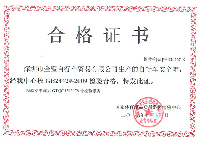 GUB頭盔國家檢測合格證書