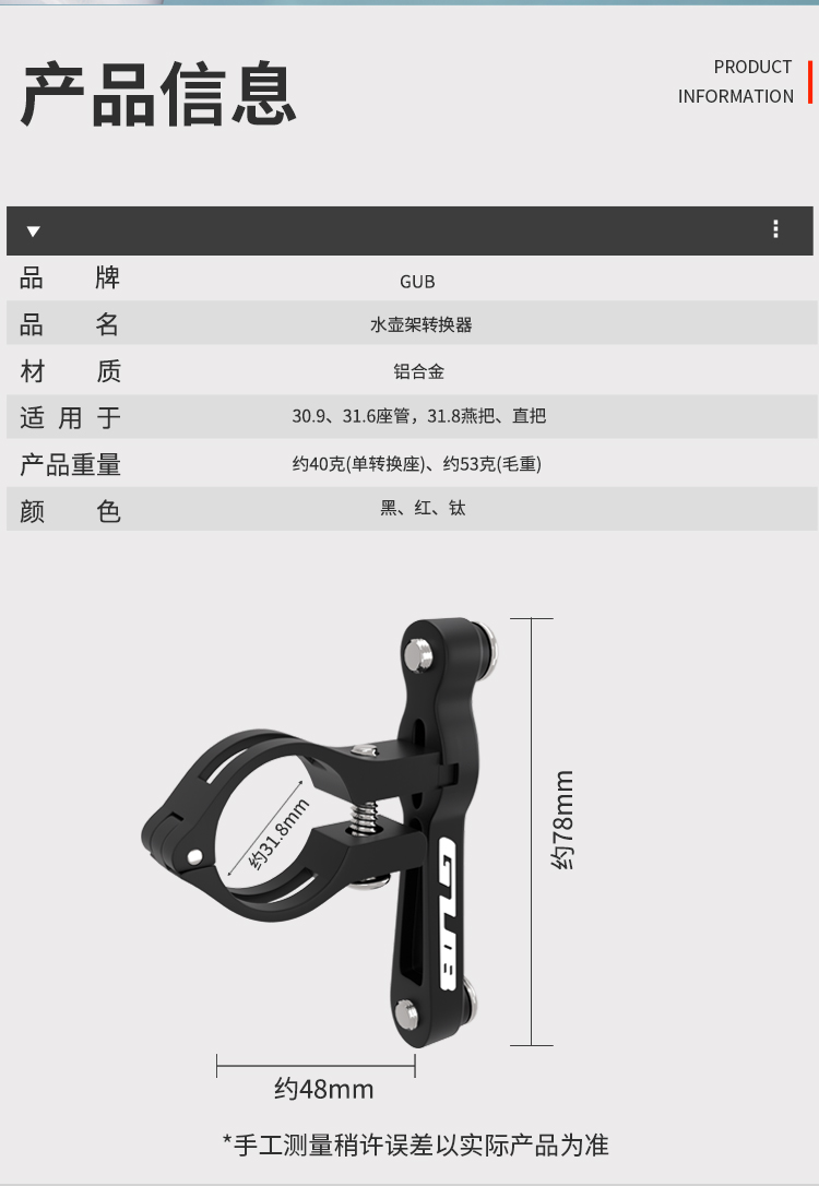 適用于30.9、31.6座管,31.8燕把、直把。