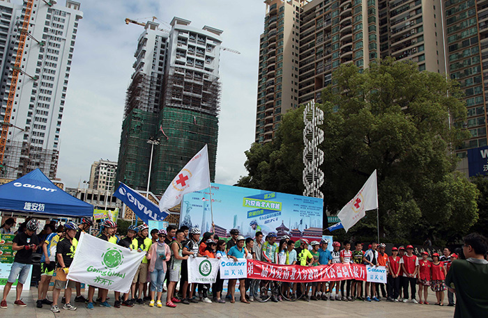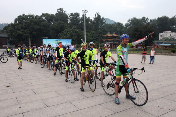韶關南華寺門口,早上六點,王衛(wèi)領隊準備大穿越最后一天的騎行沖刺