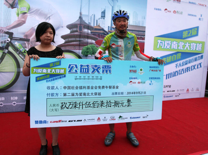 0921截止至韶關騎回廣州當天,活動共為免費午餐籌得善款九萬七千多元,相當于為山區(qū)孩子送去三萬多頓免費午餐。相當于這一路上每騎行76米就有善心人士捐出一頓午飯。