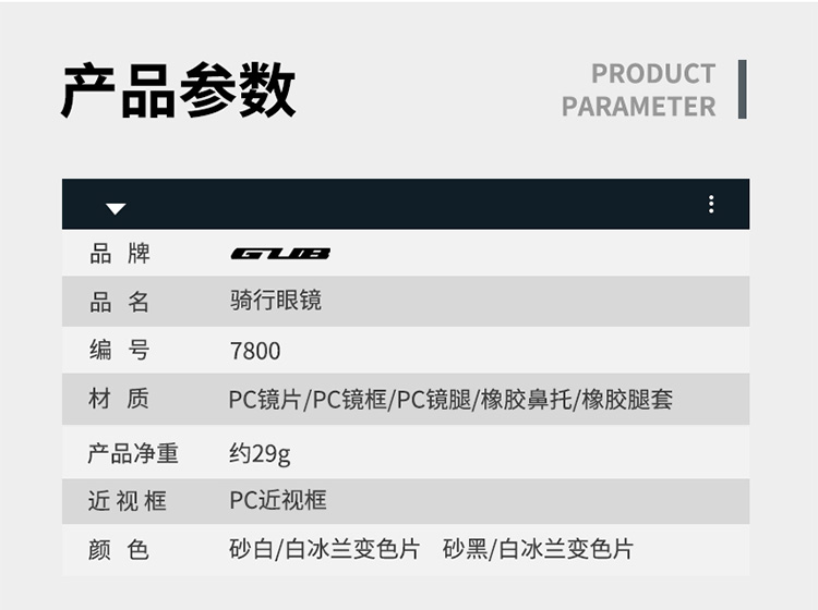 名稱(chēng):GUB 7800 騎行眼鏡